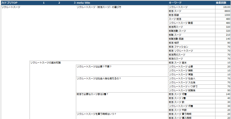 - 網羅的に分析することで、コンテンツ制作に必要なキーワード全体図がわかります